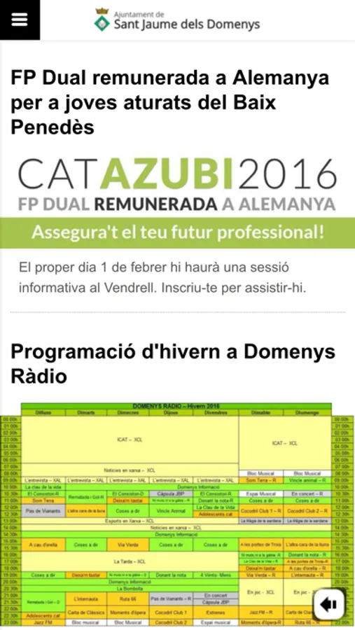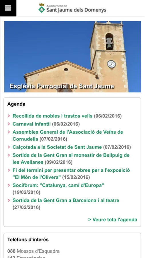 Podràs trobar notícies, l'agenda, informació de l'ajuntament, els serveis, les entitats, els nuclis, les festes... del municipi de Sant Jaume dels Domenys.