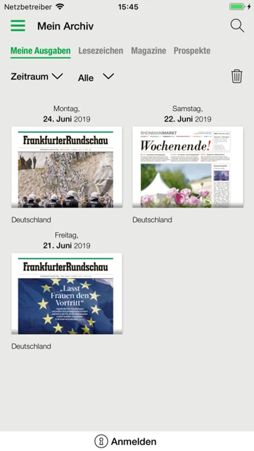 Sollten Sie ein ePaper-Abonnement für die Frankfurter Rundschau über den Verlag abgeschlossen und Zugangsdaten erhalten haben, so sind diese auch für ein Login innerhalb der App gültig, es werden Ihnen nach dem Login sämtliche abonnierte Ausgaben angezeigt.