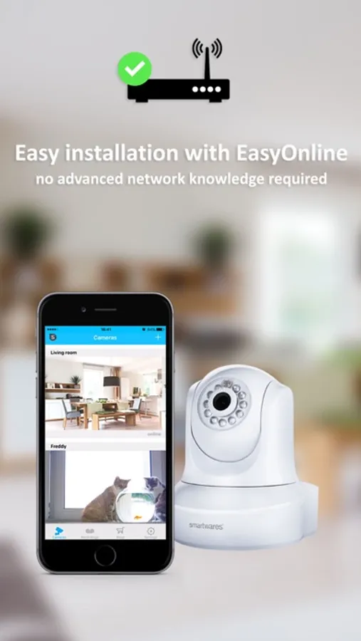 The cameras app guides you through the entire configuration of the camera, so you have it set up in no-time. And afterwards, because of our proprietary EasyOnline technology, you will be able to enjoy the live feed and other functionality from anywhere you are, completely hassle-free.