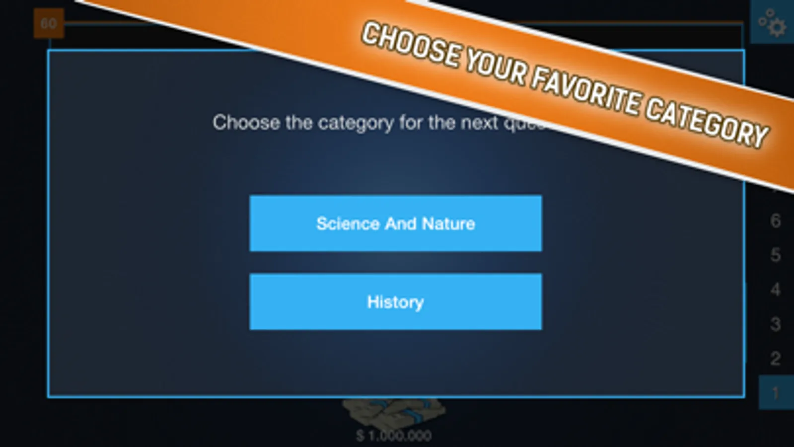 Mega Quiz is the only game of general knowledge where you start with the top prize: 1 Million!