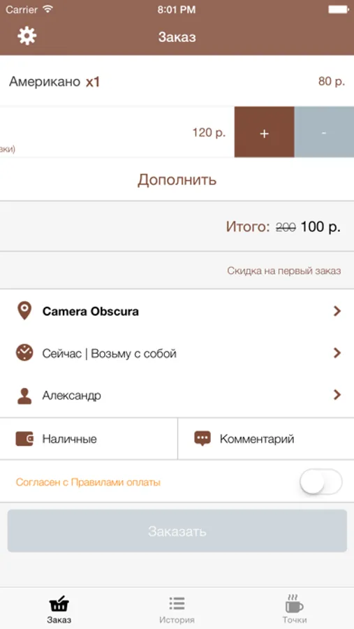 Приложение Camera Obscura от компании Ru-Beacon позволяет легко и просто оформить и оплатить заказ без необходимости стоять в очереди. Выберите любимый напиток, к какому времени его приготовить и оформите заказ. Благодаря мобильному сервису от Альфа-банка можно «привязать» карту к приложению и делать заказ в 3 клика.