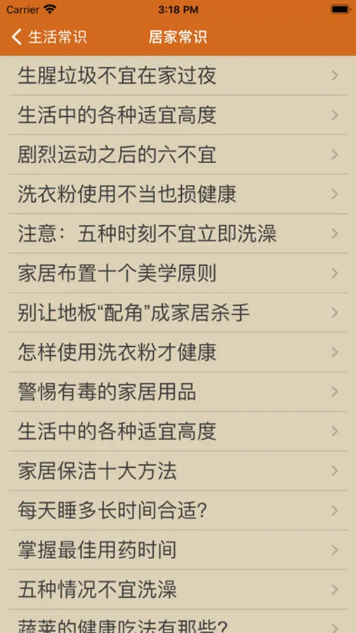 本应用收集了各种生活小常识,共分为12大类,包括生活常识,家电电脑,健康养生 ,安全急救,美食天下等大分类,且并每个大分类下面又分为几个详细小类,并有复制及收藏功能,非常方便用户使用。
