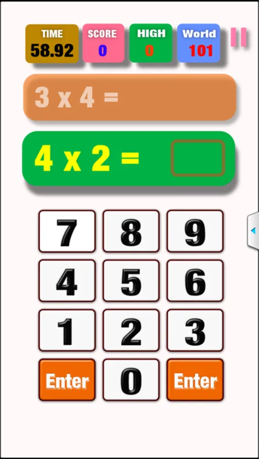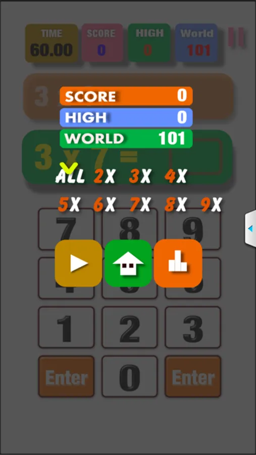 How to Play? You only need to answer for multiplication questions within 60 seconds as many as possible!! Simple as it is!! Next question will be displayed on the top of your screen so that you will find some tricks to keep you playing faster!! This is an educational game for children to master multiplication table by competing with friends and it will give some fun time for adults to win or lose a coffee on a bet!! Also, this App will help senior to prevent dementia by continuous brain exerci