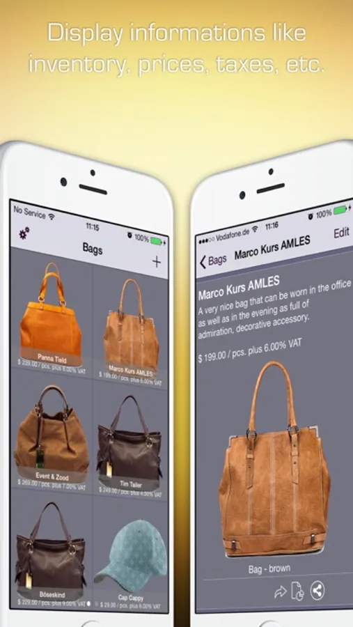 Especially at trade fairs or directly at the customer you can "point" with the app. You do not need any more catalogs carry around. You have always the most current information (descriptions, inventories, prices, PDF documents) of your products now available with the app.