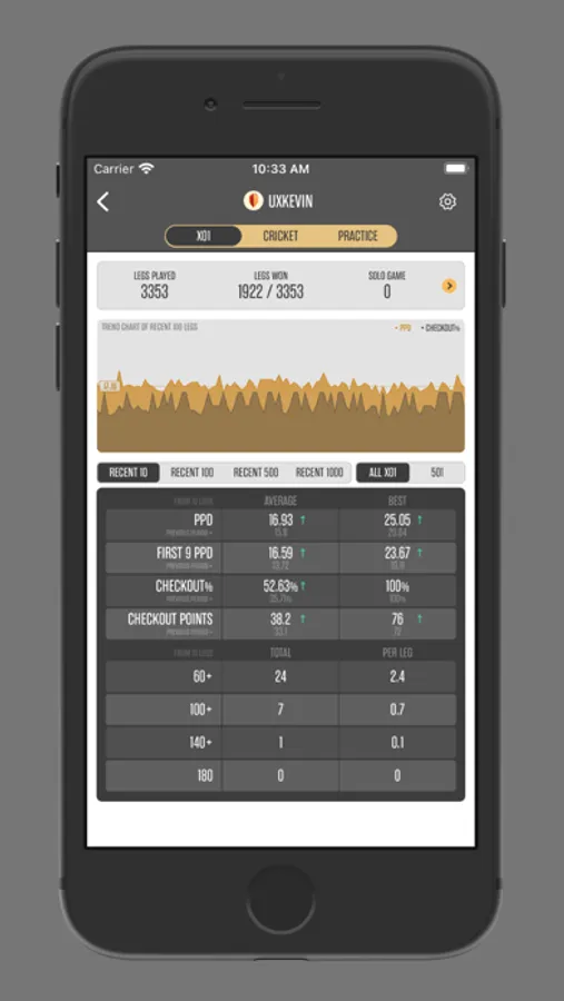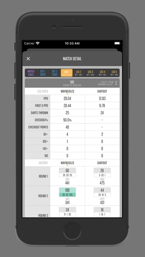 - Provide detailed statistics for each game to help you to understand and improve your darts skill.