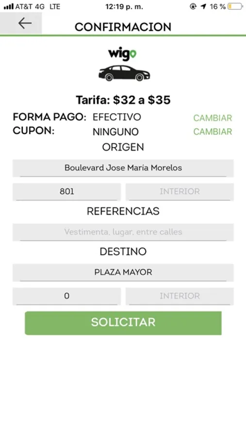 Consulta el precio estimado de tu viaje ingresando tu ubicación y destino. Elige la forma en la que prefieres pagar, en efectivo o con cargo a tu tarjeta.