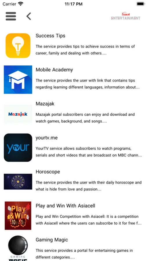 Asiacell is one of the leading telecom companies in Iraq with over 14 million subscribers across the country. Asiacell application provides the users with a platform that gathers all the subscription services offered by Asiacell under one place. The application includes over 700 services from a variety of categories such as entertainment, sports, news etc., all gathered in a beautifully designed and easy to use application.