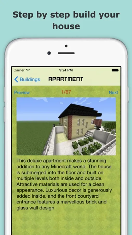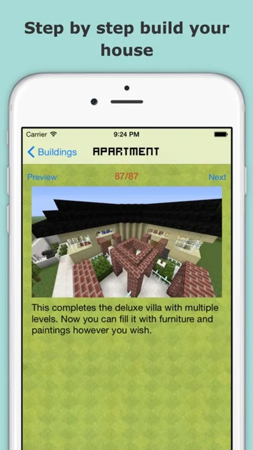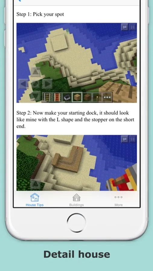 "House ideas guide for minecraft" provides the ultimate guide for building your own Houses in Minecraft. The app includes step-by-step instructions to make a bunch of different houses, from basic house (house tips) to famous building.