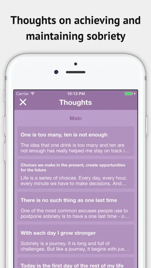* Achieve sobriety with helpful and motivational advise (quotes from great people, as well as thoughts on the subject)