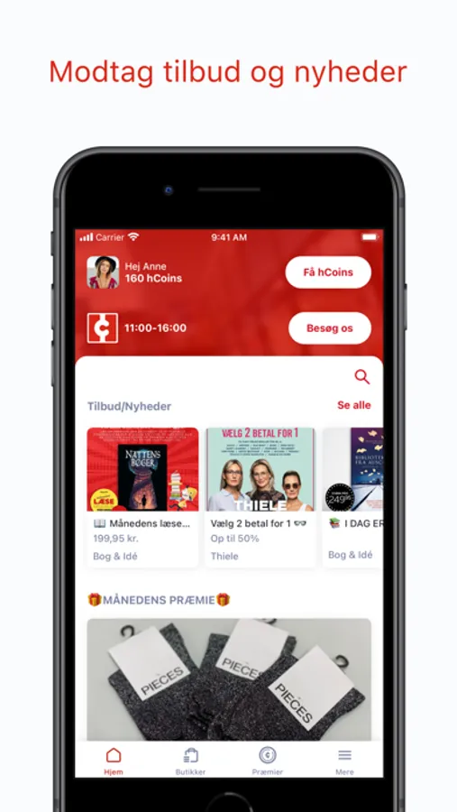 Optjen hCoins hver gang du besøger centret, og indløs dem til gratis præmier.
