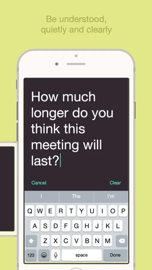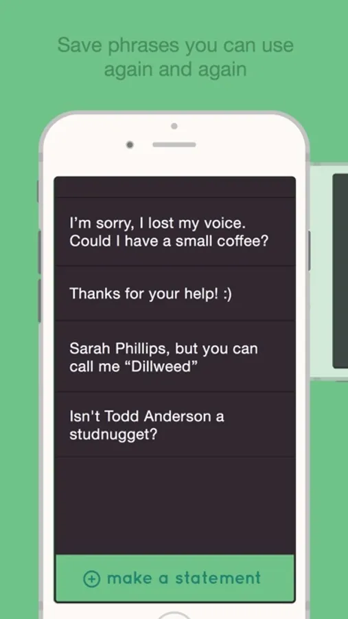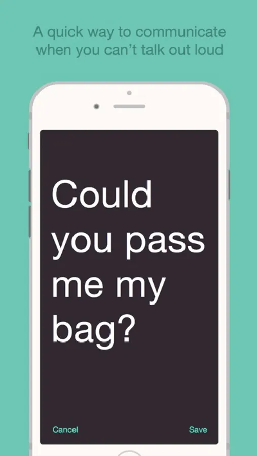 Statement enables you to easily communicate in-person when you can't talk out loud. Whether you're at a noisy concert, in a quiet classroom, or have trouble speaking, simply type your message and turn your phone around.