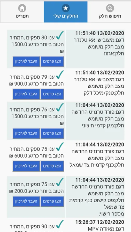 קאר-פארט" הינו אפליקצית השוואת מחירי חלקי חילוף לרכב, המאפשר לך לקבל מחירים ממגוון רחב של ספקים/מגרשי רכב עבור חלקי רכב משומשים וחדשים במינימום מאמץ ומקסימום אופציות רלוונטיות. מהפכת המחירים הגיעה גם לכאן, אם בעבר נאלצת "לבזבז" זמן רב על התקשרות מול ספקים/מגרשי רכב לחיפוש החלק הרצוי ולהשוואת המחירים – היום אנו עושים זאת בשבילך. מערכת שמחוברת 24 שעות למגרשי חלקים משומשים וחדשים ברחבי הארץ המאפשרת לך בלחיצת עכבר פשוטה לתקשר עם עשרות ספקים ולקבל את ההצעה הטובה ביותר עבורך.