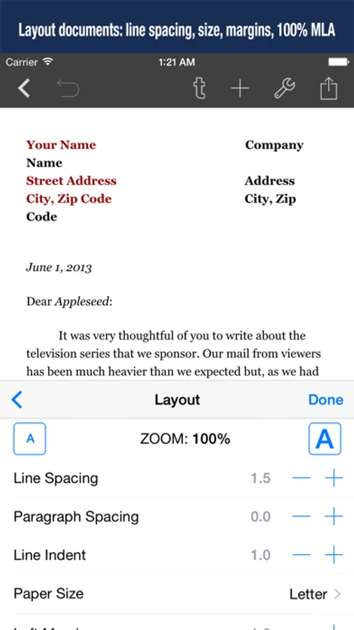 + Modify margins and paper sizes, MLA and APA style format support including document headers/footers, very useful for students and teachers
