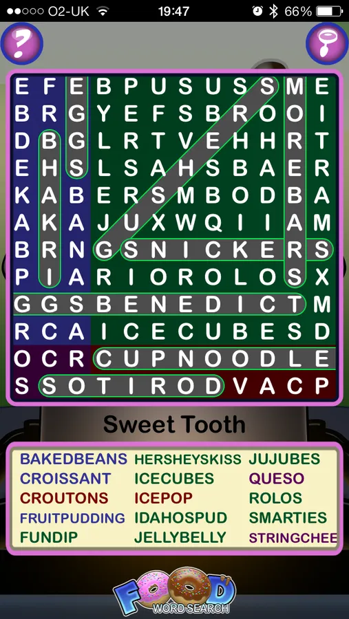 Epic Food Word Search was compiled from user submissions in Word Search Party, also by Lightwood Games. Like our record-besting game Word Search 10K, it has been hand-crafted to form one continuous puzzle with words in every direction.