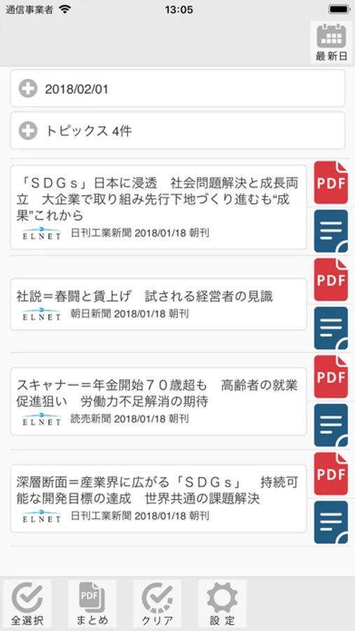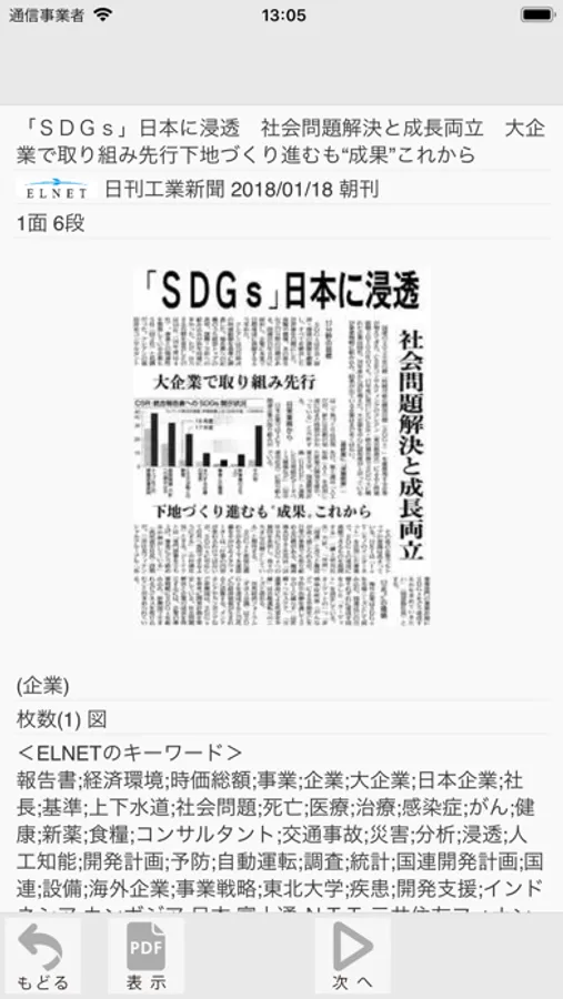 見出し一覧や記事詳細画面のPDFアイコンをタップすると記事原文を表示します。 記事原文は