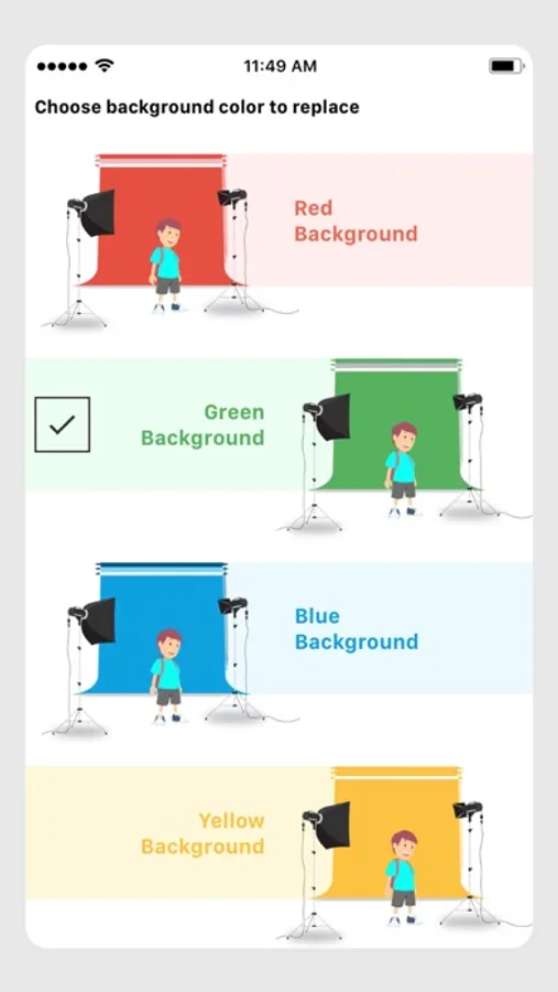 That’s it ! The Background Chroma color will be replaced with the photo or video you selected in the Camera. You can take a photo or record a video.