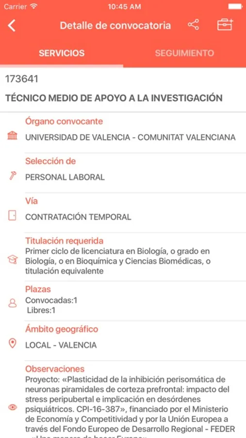 • Guardar tus búsquedas: recibirás notificación cuando haya nuevas convocatorias que cumplan los criterios de la búsqueda.