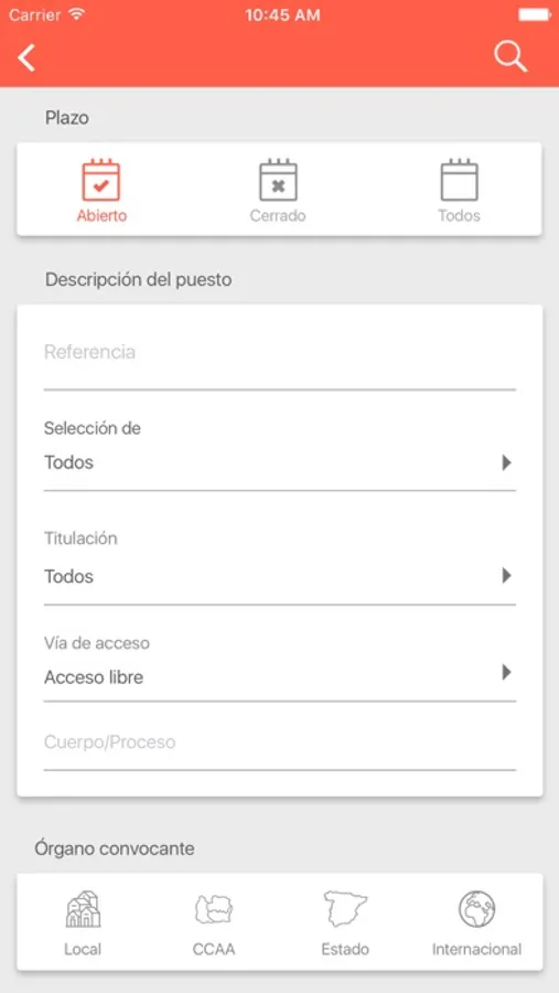 • Buscar convocatorias directamente por palabras clave o utilizar el filtro para seleccionar tus preferencias.