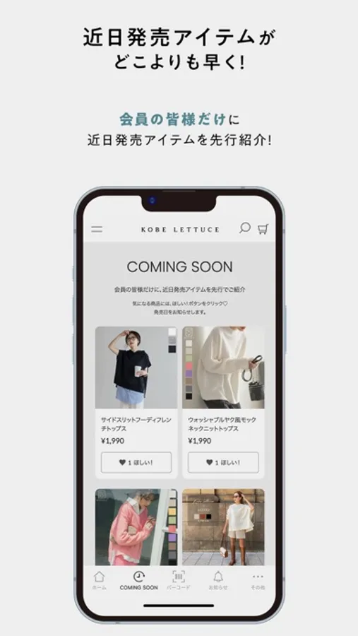 会員になると、近日発売(coming soon)アイテムがいち早くチェックできる特典も!