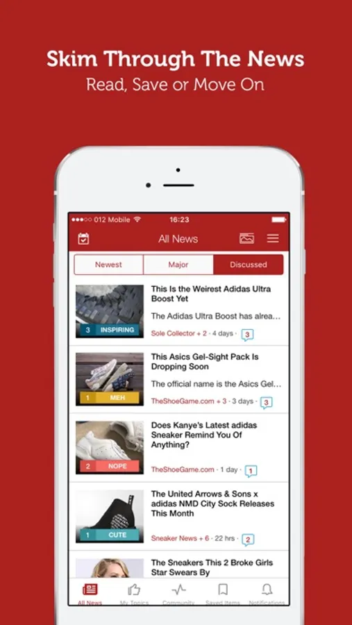 * A 100% sneakers-related feed with no repeat stories - see all the sources that covered a story with a simple tap