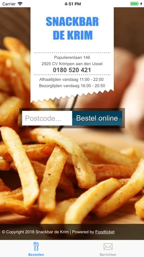 Met de Snackbar De Krim app bestel je veilig en snel de lekkerste snack, patat en meer van Krimpen aan den IJssel en omstreken. Direct online betalen via je eigen bank met iDEAL!