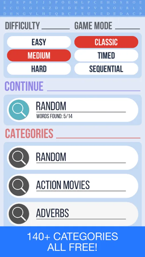 Made for word search lovers, play your favorite classic puzzles in a variety of different games modes. A wide range of word searches available for all ages, where you can choose from Classic, Timed or Sequential game modes.