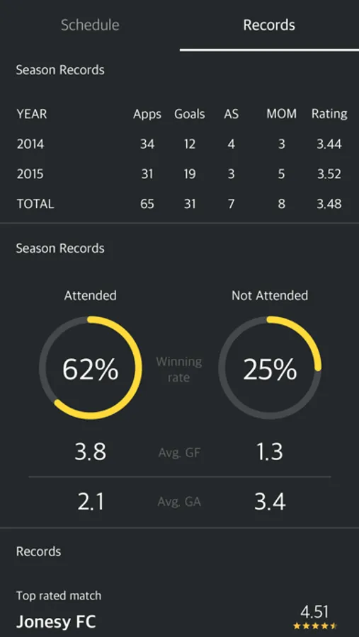Footplr provides you various interesting analysis and statistics with the records you've inserted.