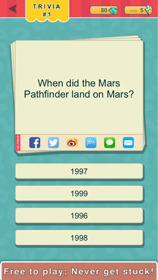 - Stuck on a question? You can always pass it for free! No in-app purchase necessary!