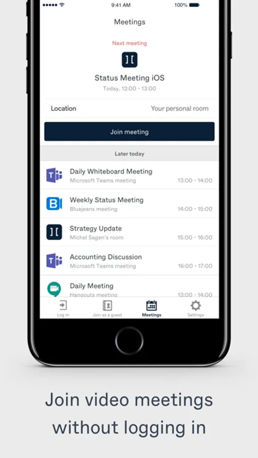* Meetings which automatically monitors your calendar for upcoming video meetings