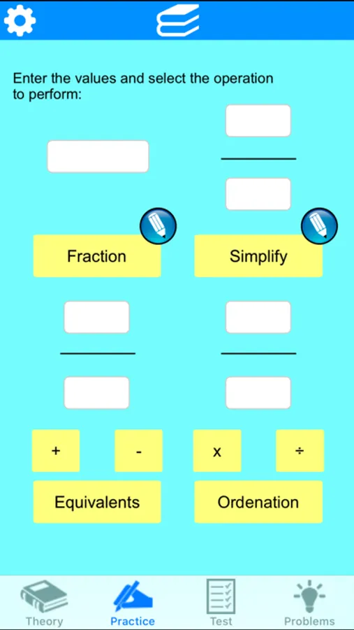 Esta aplicación de Editorial Editex S.A. realiza operaciones básicas con fracciones. Comprende los siguientes apartados: