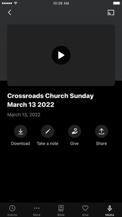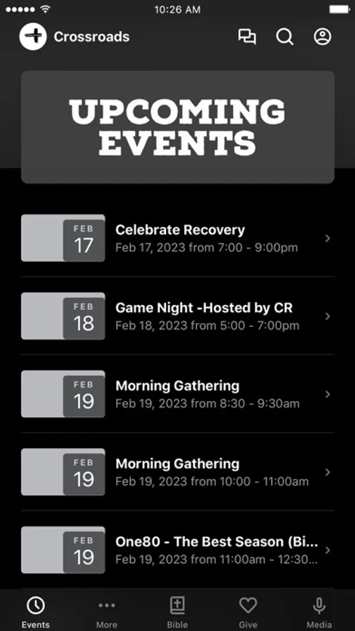 The Crossroads Church App provides instant access to upcoming Events, Blog posts, a map to our campus location, a link for Online Giving, and an online Bible with reading plan. Come connect with us!