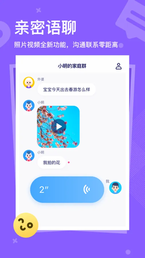支持监护成员与孩子间语音聊天,增添趣味表情包;