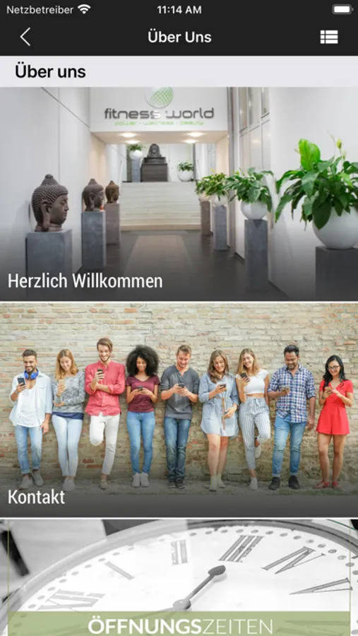 Informationen wie Öffnungszeiten, Kontaktdaten, Studiofotos und Trainingstipps sind griffbereit und können sofort per E-Mail zu Freunden geschickt werden.