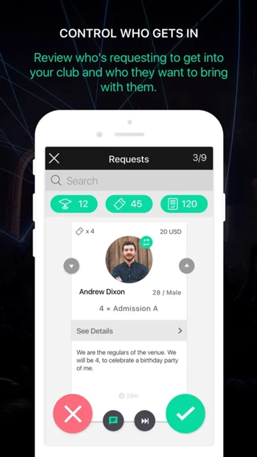 The Keyflow Business App allows event owners / managers / doormen to update & sync guest lists, VIP cards, guest traits, requests and VIP tables instantly. The App works in harmony with the Keyflow backend system where Event Producers manage all aspects of Events, including Admission sales, Table sales, Membership Cards and much more.