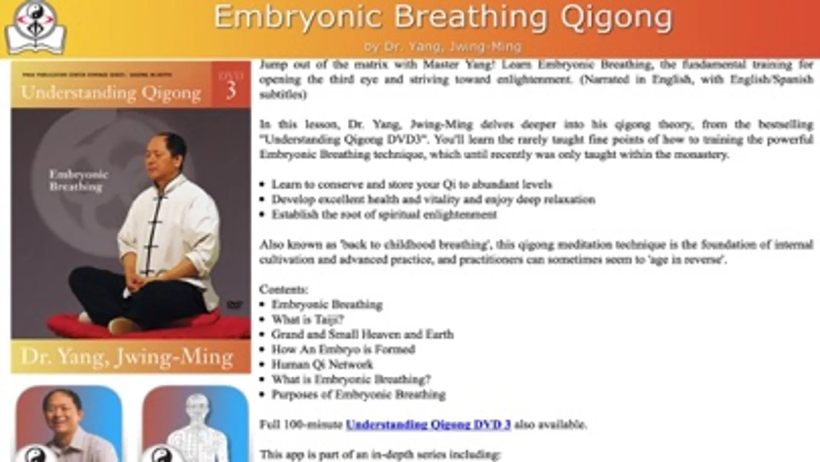 Tap into your inner power with this streaming video by Master Yang! Learn Embryonic Breathing, the fundamental training for opening the third eye and striving toward enlightenment. Dr. Yang teaches in English, with English/Spanish subtitles.