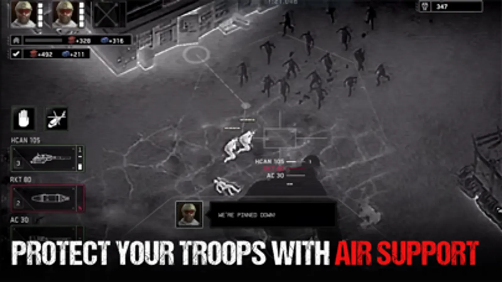 Survive a zombie apocalypse and protect the human race from the gunner seat of an AC-130 gunship! Engage in tactical operations and lead groups of military survivors on scavenging missions. Loot precious resources, bring them back to base and build your defenses to repel zombie assaults.