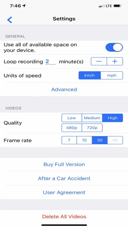 - 2 options for how much storage space you want to store your videos: set Max capacity or allow use all of available space of your device.