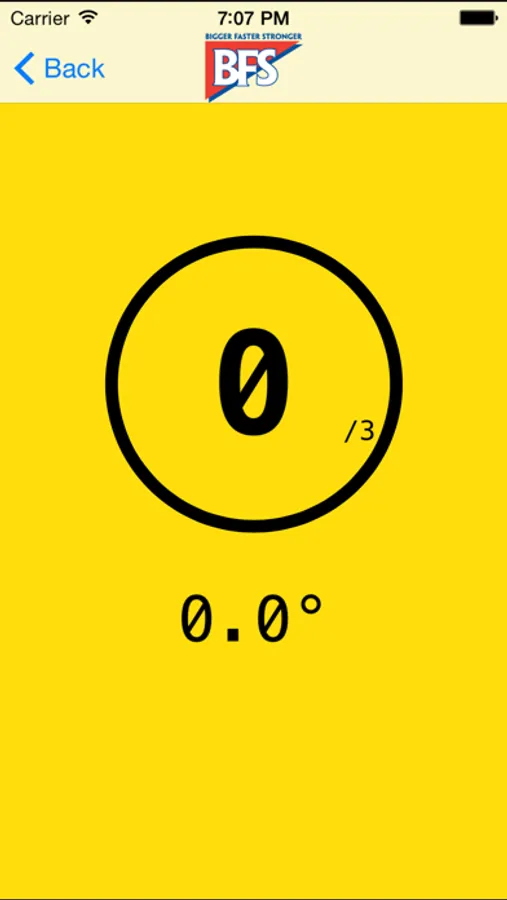 Settings allow beep/vibrate at 0º (true parallel), or 15 and 20 degrees above parallel, useful for a box squat or an easier/training workout. The Settings page also allows you to choose the number of reps in your set.
