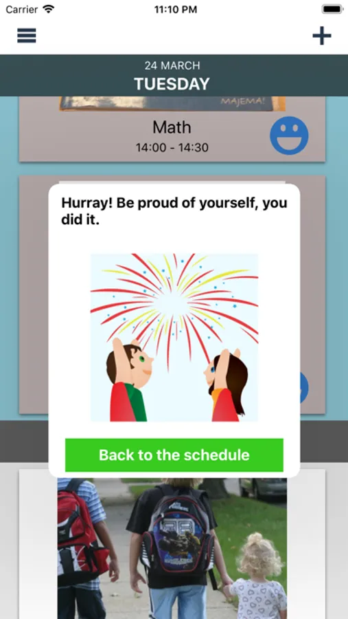 If you are a parent, teacher, or support person, you can create and manage schedules for your children, students, or individuals. Add events with images and follow up on progress in the app.