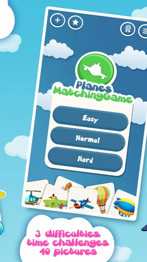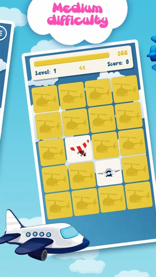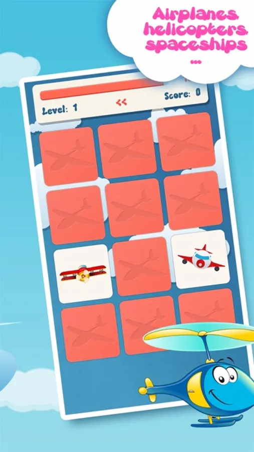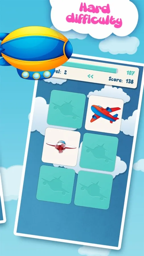 Game for kids that improves child’s matching and is really fun to play. In this game for toddlers for each level, kids must to match two same pictures of planes. If you match two same pictures of planes correctly they will disappear.