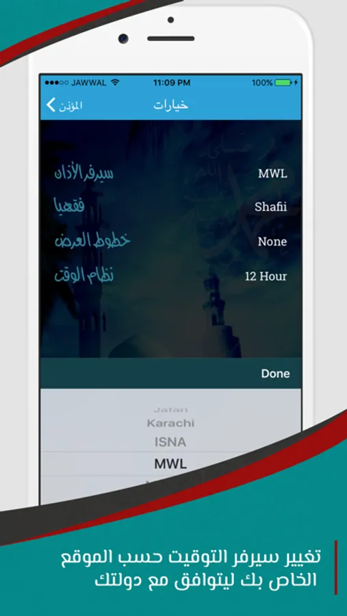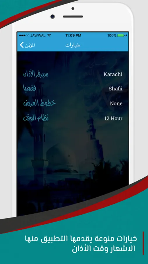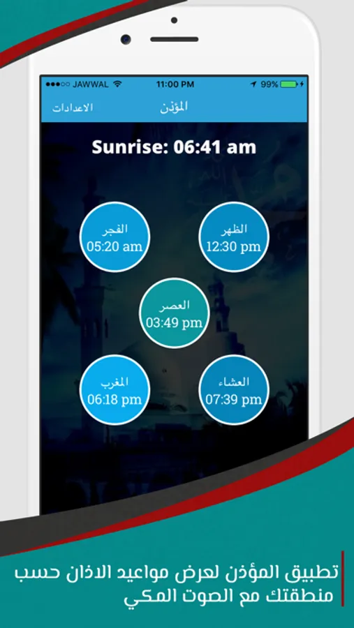 تطبيق المؤذن للايفون لعرض مواعيد الصلاة والتنبيه عند كل موعد للصلاوت الخمس على الايفون.