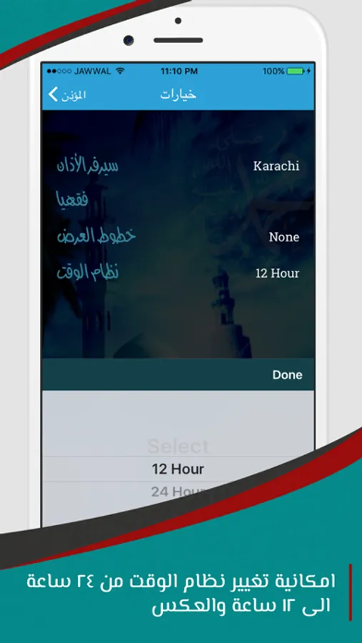 - امكانية تعدل نظام الوقت ١٢-٢٤