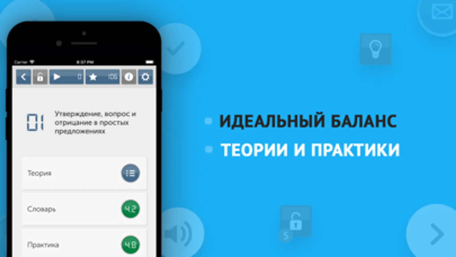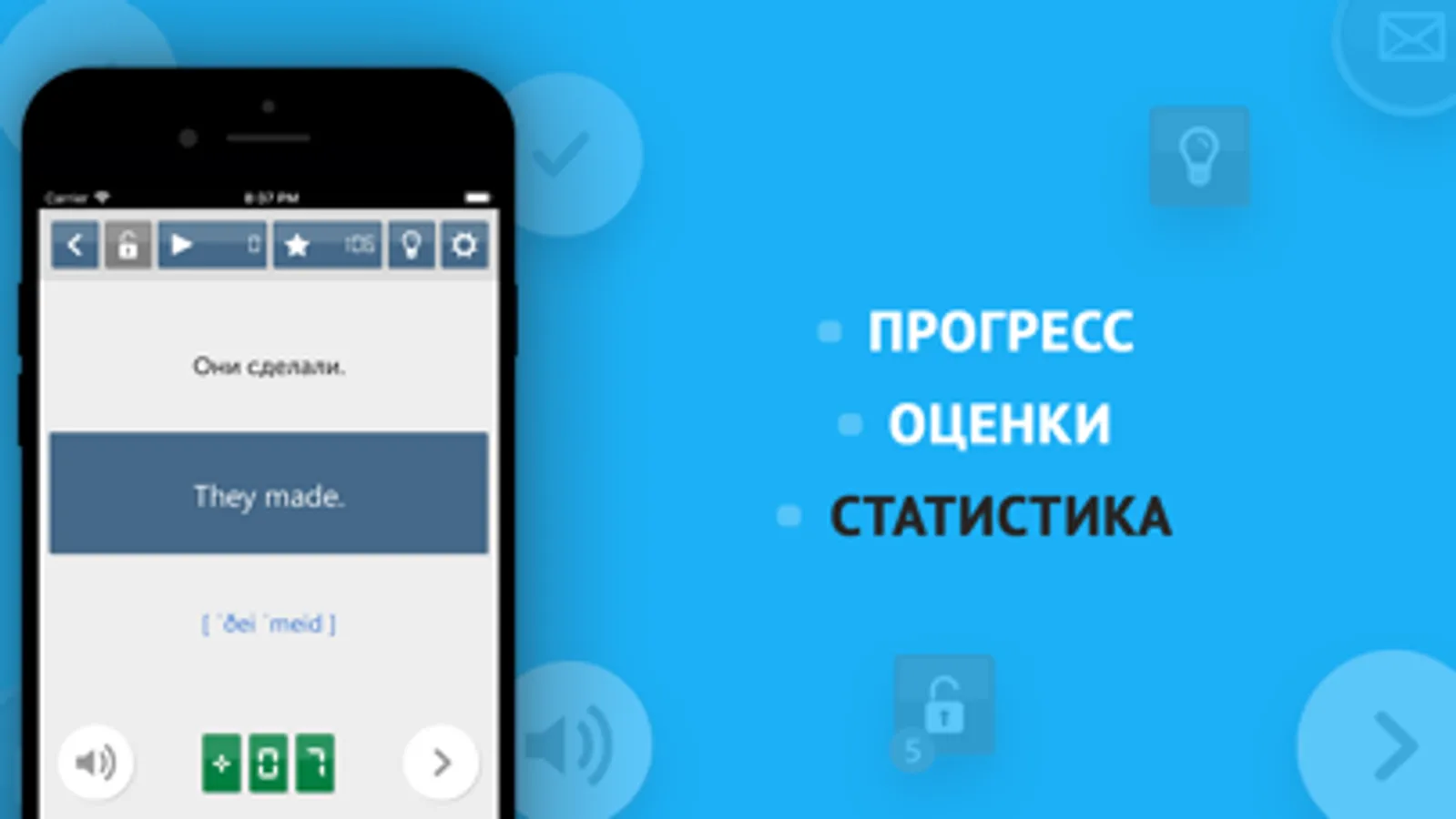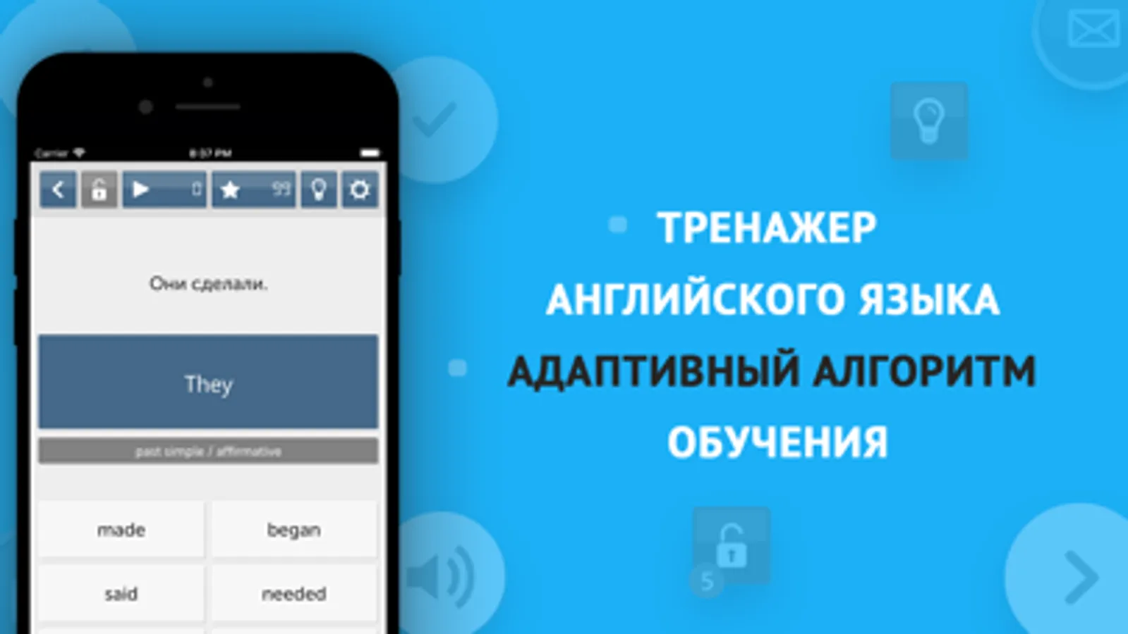 Наше приложение не конкурирует с другими программами обучения английскому. Оно просто иное. Оно дополняет их. Пользуясь им, вы кристаллизуете знания, полученные ранее и в других местах. Соединяете все вместе! Мы не просто помогаем увеличить словарный запас или выучить грамматические правила. Наша методика прививает навык интуитивной работы с конструкциями английского языка. Вы начнете говорить на подсознании! Вы услышите вопрос иностранца, ответите, а потом вдруг сообразите, что ответили по-английски!