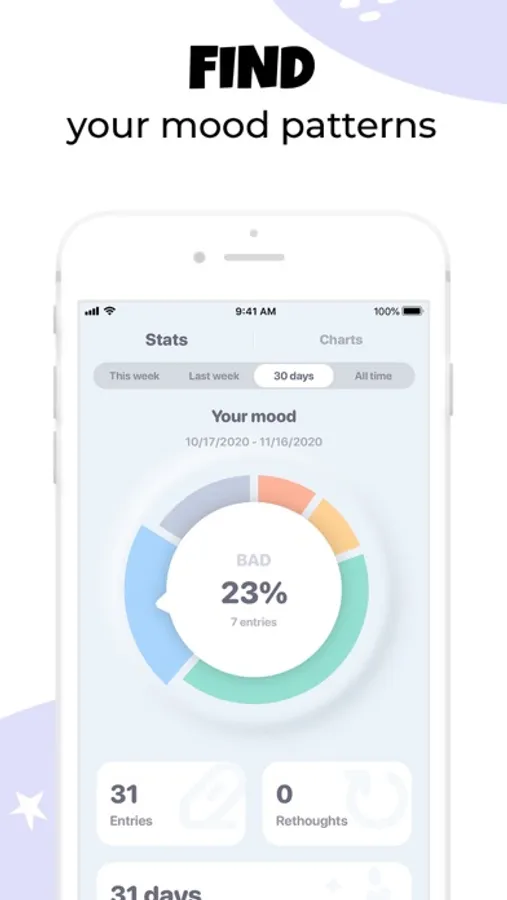 Meet Moodnotes - a super easy mood tracker & journaling app to capture your mood and help you improve your thinking habits. Moodnotes empowers you to track your mood over time, avoid common thinking traps, and develop perspectives associated with increased happiness and well-being.