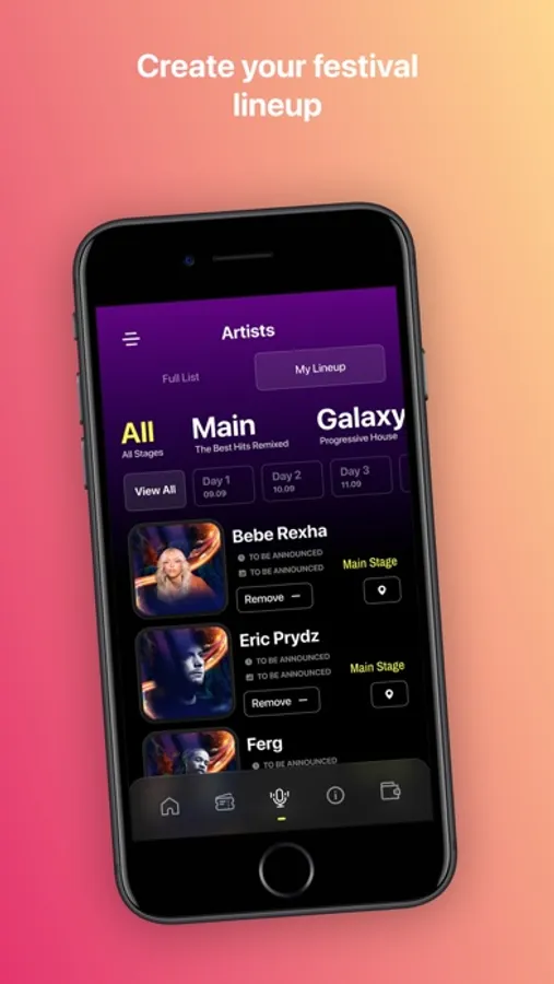 Create your own schedule and just enjoy the magical kingdom of UNTOLD. We will take care that you won’t miss your favorite artists, and we will send you through the App a reminder before every show that you’ve selected.