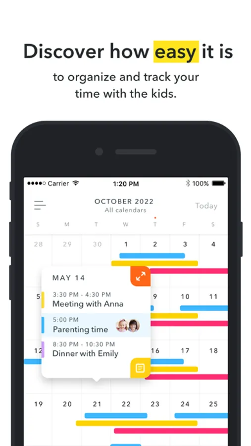 • Utilizing our parenting schedule templates or customizing your own makes schedule sharing easy.