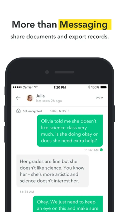 • Send and receive text messages that cannot be altered or deleted.
