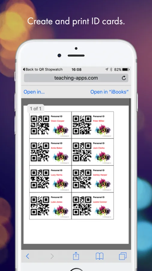 Simply type in all names/items at once and get multiple QR codes in a PDF, which you can then print and save. It couldn’t be any easier! Each QR code is embedded in a student ID card in a credit card size. These cards can be used for different apps and uses. Be sure to subscribe to the newsletter to receive updates on any new apps.