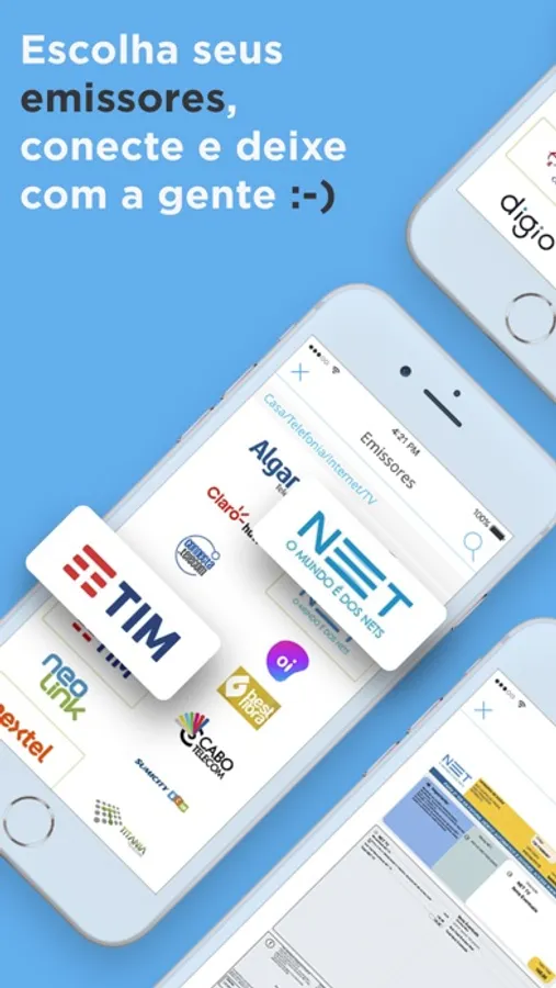 ◉ Tenha acesso a suas contas e documentos, exatamente como você os conhece, com exatamente as mesmas informações, sejam elas de extratos, detalhamentos, consumo, etc. só que no formato digital. Simplifique e livre-se do papel!