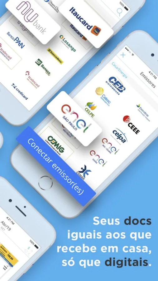 ◉ Receba suas contas e documentos no formato digital, exatamente iguais as que você recebe em casa, dos emissores com conexão. Mais simples, mais rápido, sem atrasos ou falhas de entrega
